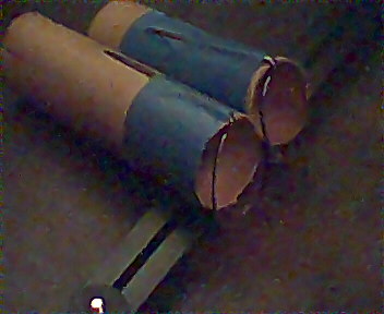 made for two cut-off paper towel cores and lenses from a